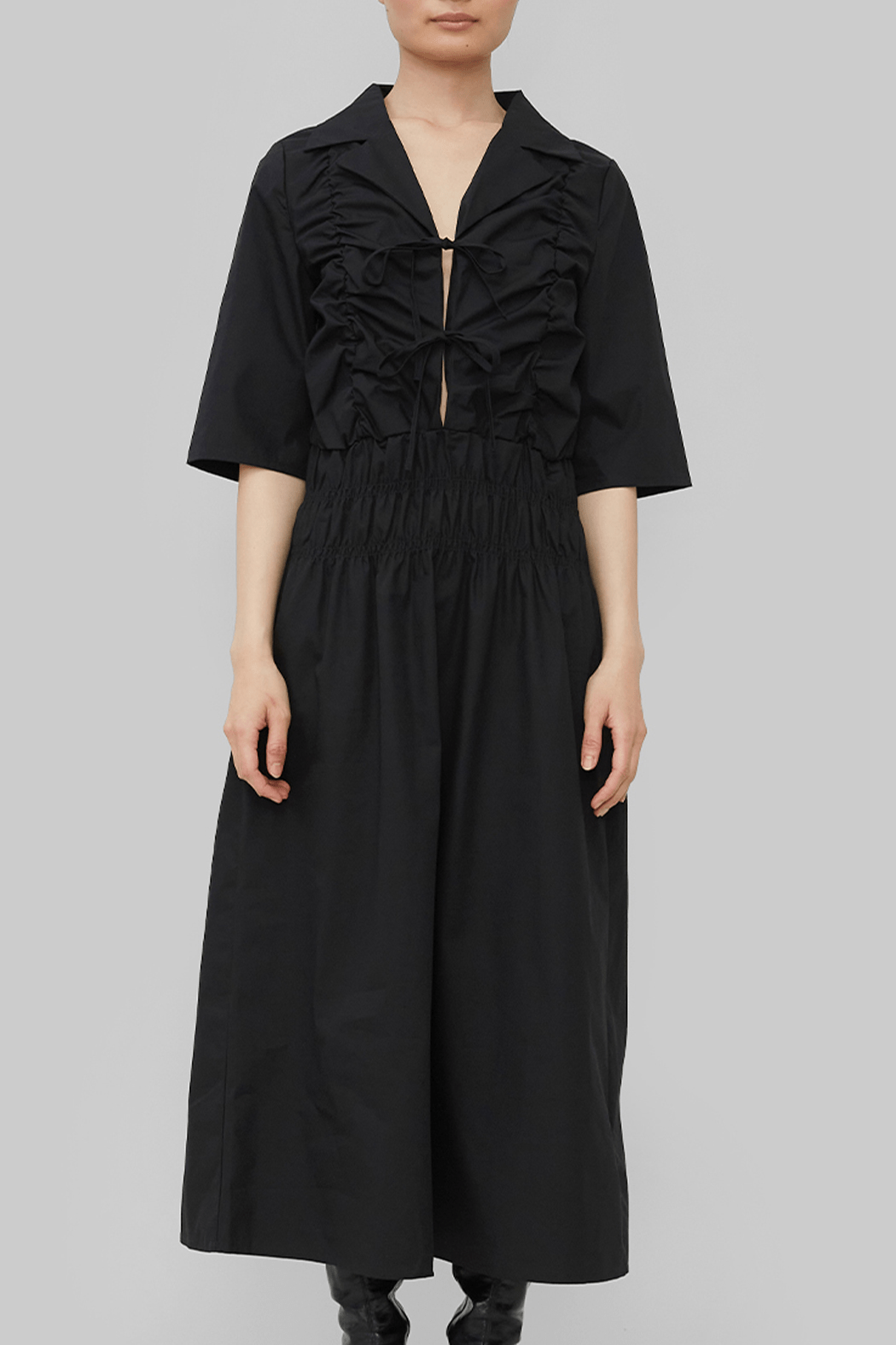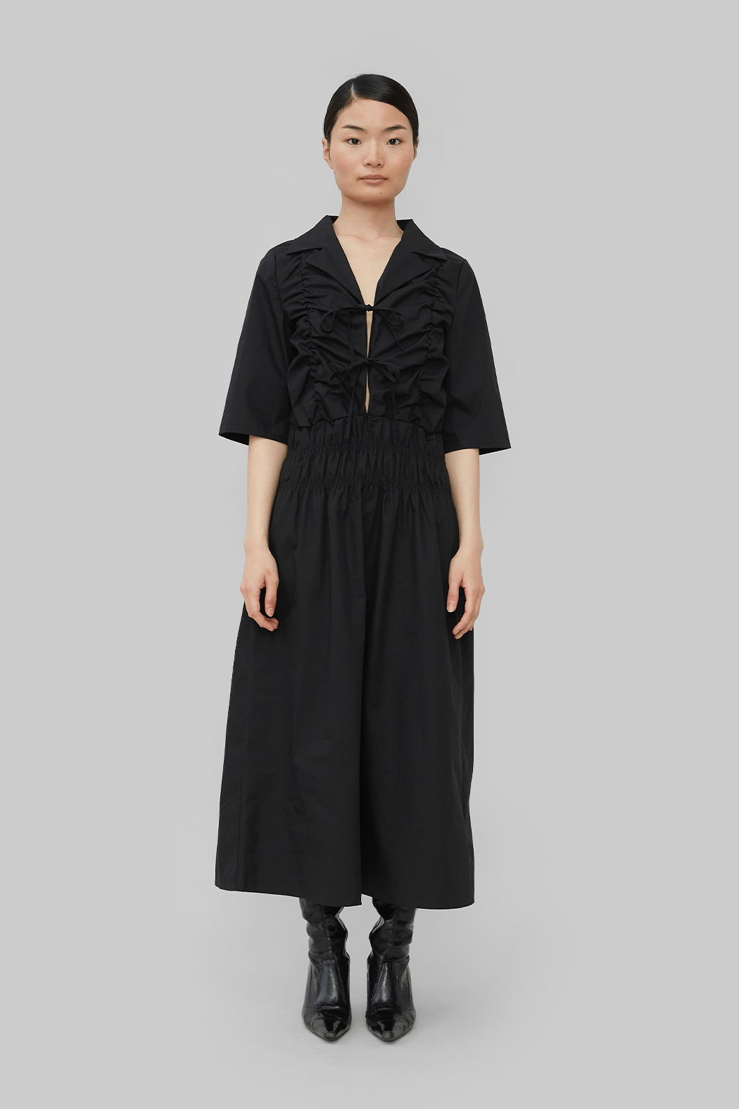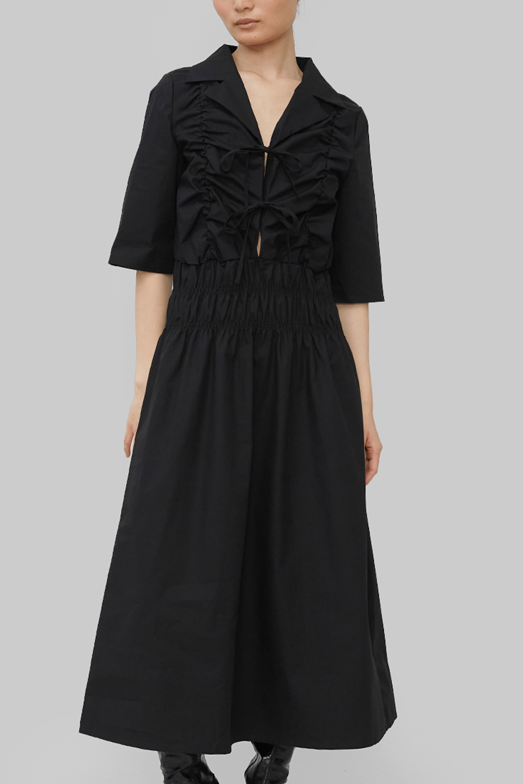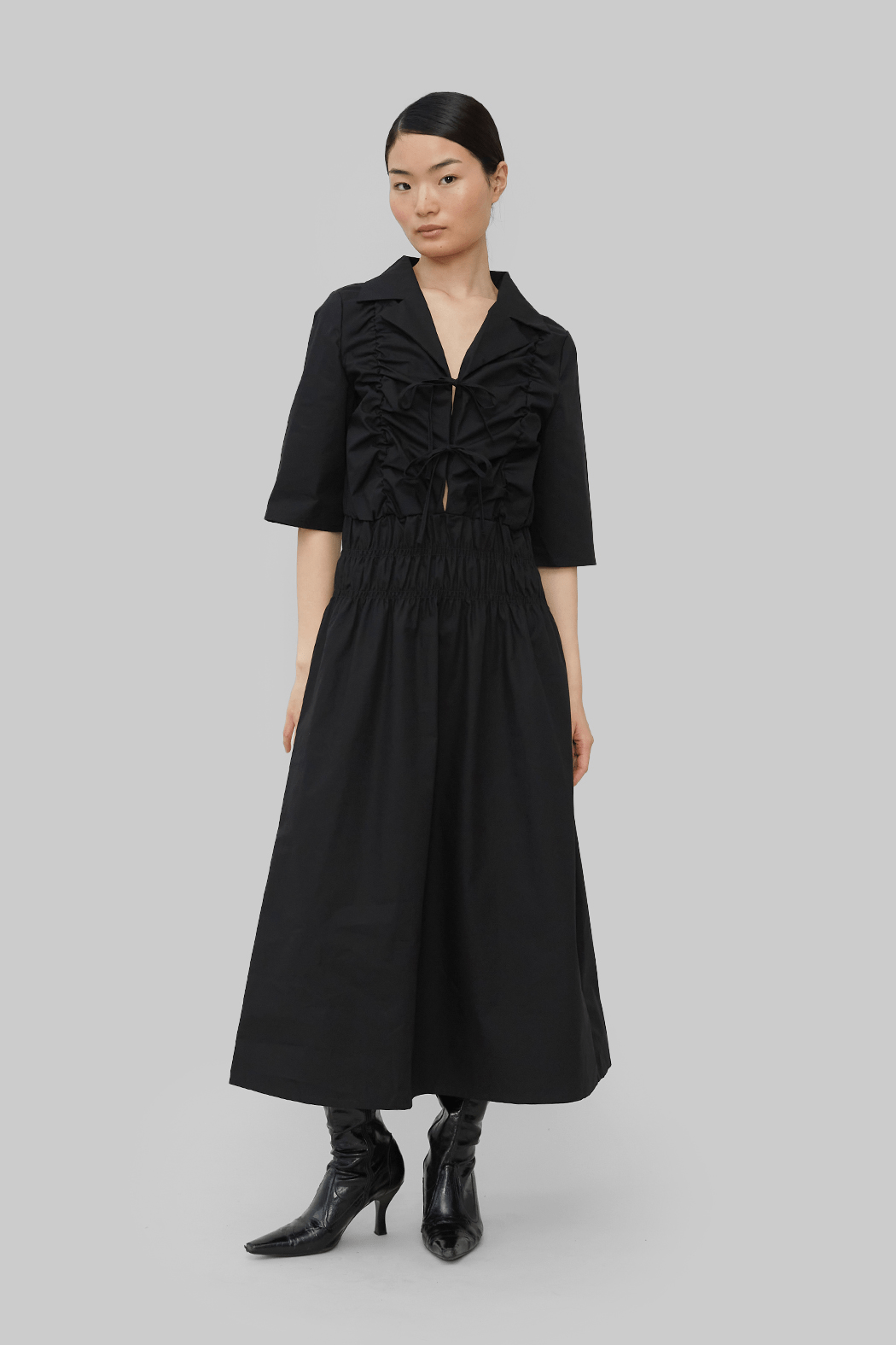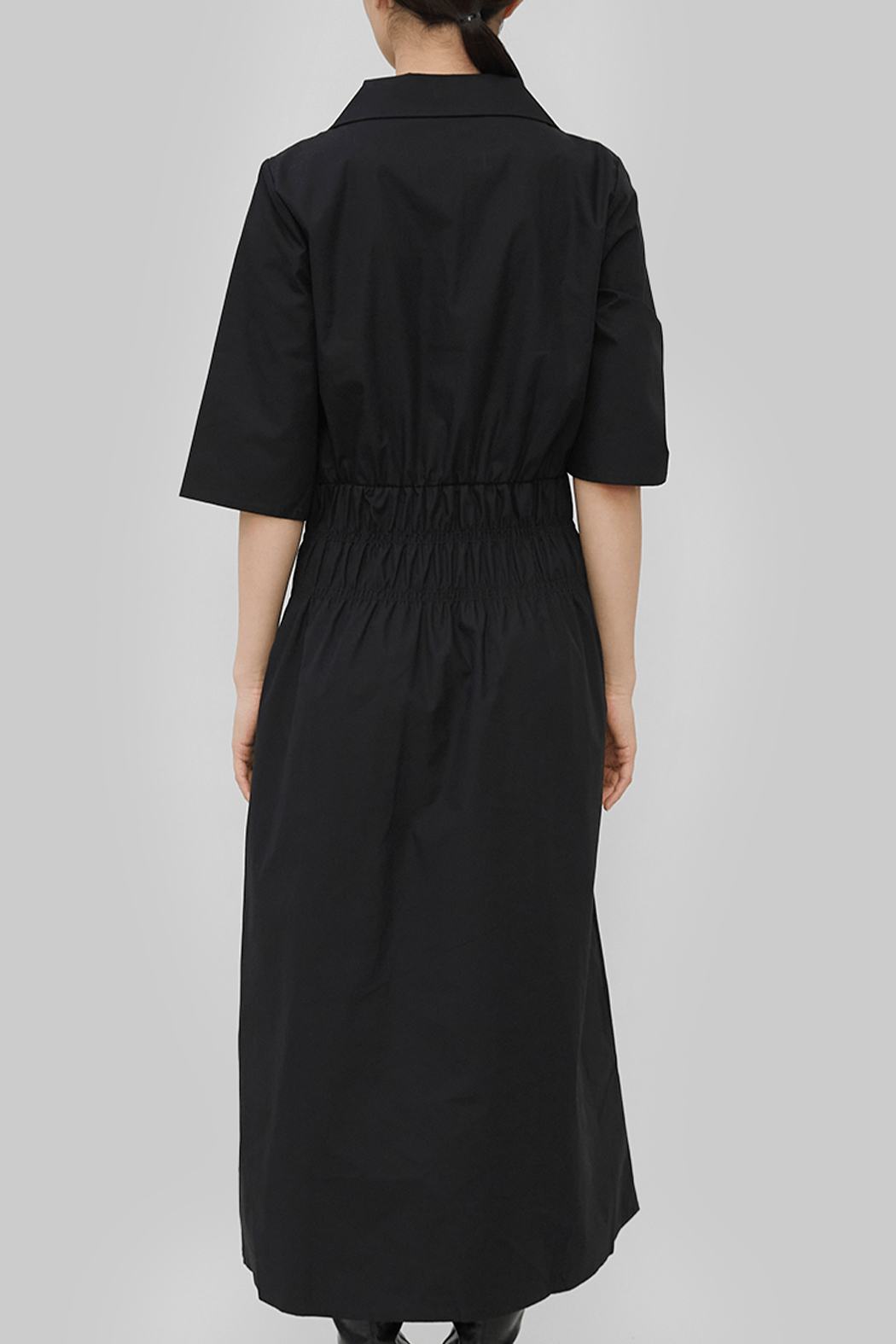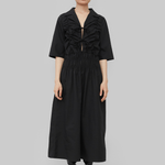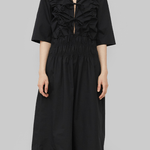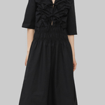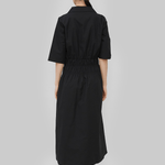The Gabrielle Dress in classic black is crafted from 100% organic cotton. Designed with a relaxed, slightly loose silhouette, this midi-length dress features mid-length sleeves and a gently smocked waist that flatters without restricting. The flowing dress adds movement and grace, while the minimalist design keeps the look clean and refined. Perfect for both casual days and elevated evenings, the Gabrielle Dress is a timeless staple.