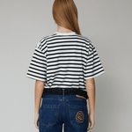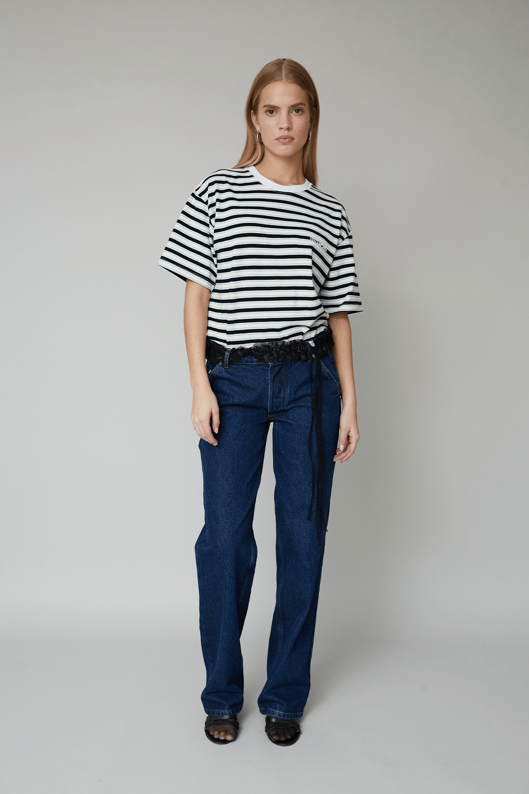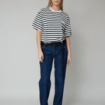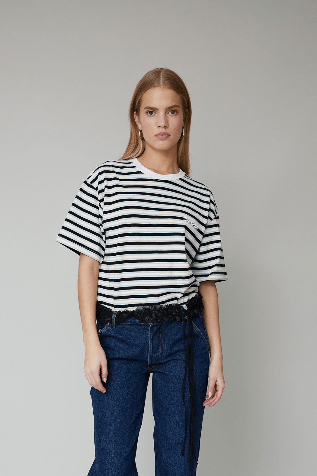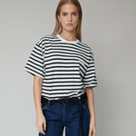 Our Claude T-shirt is crafted from soft 100% organic cotton. This season's Claude features fun stripes in blue nuances with a beige twist. Claude has a relaxed, unisex fit and features a round neckline, short sleeves, a straight hem, a white neckline and